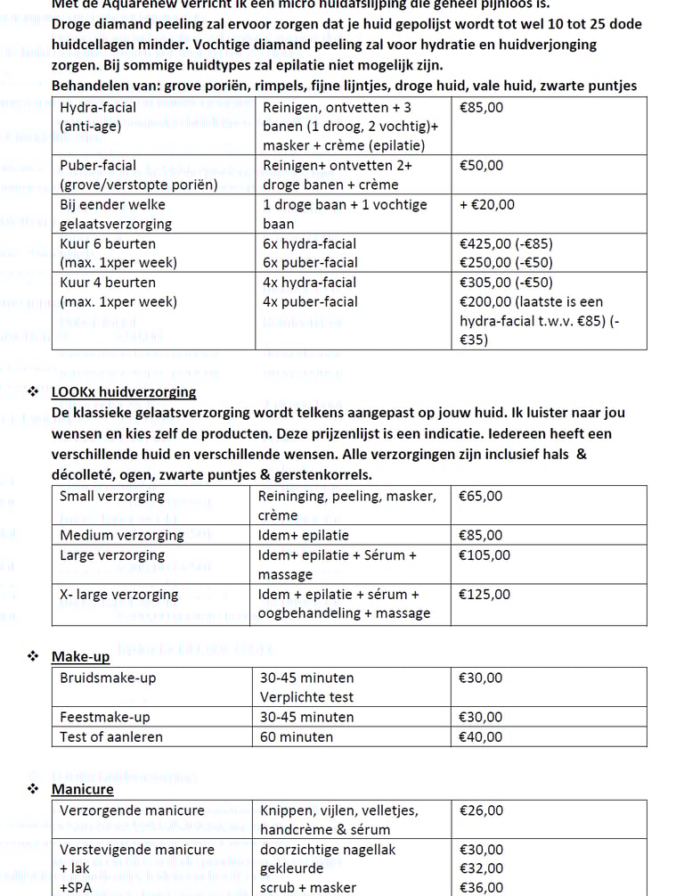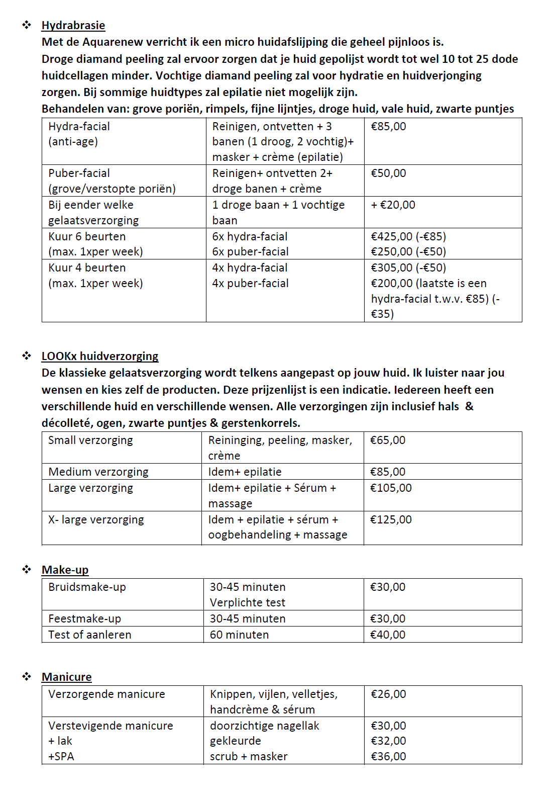 Hieronder kan u een overzicht zien van Josephine haar diensten.