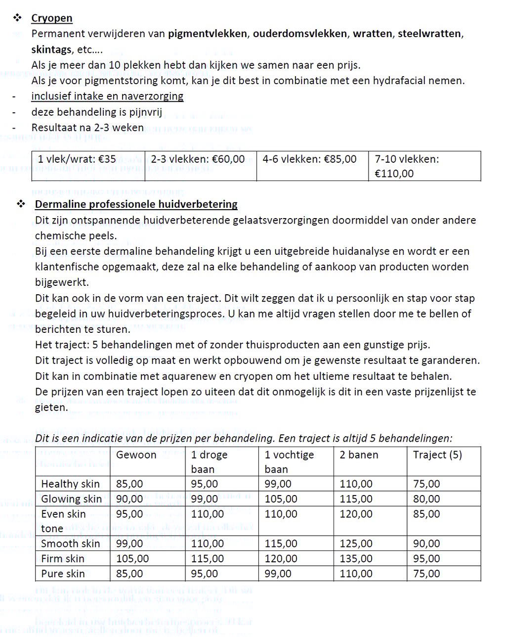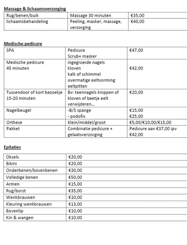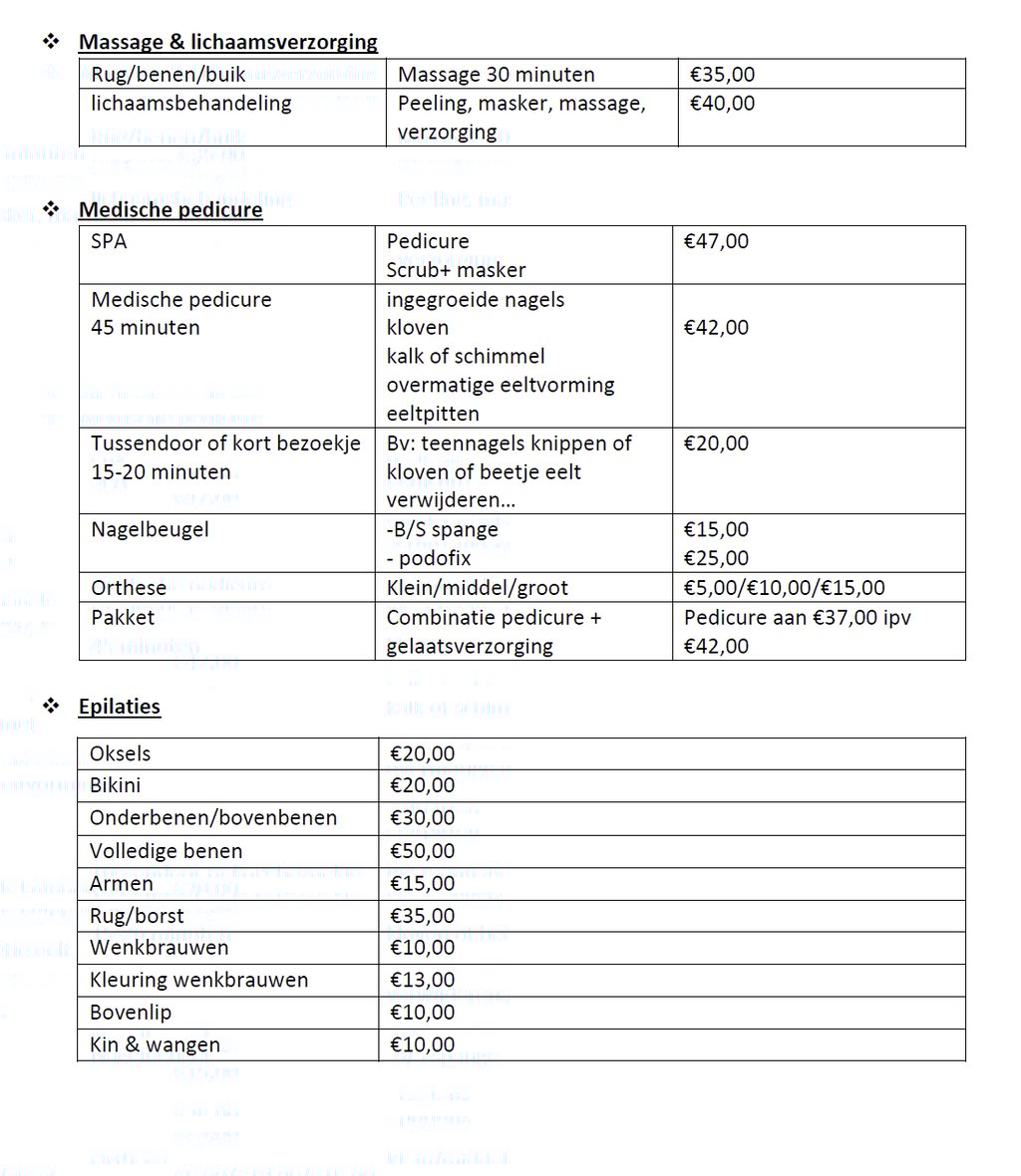 Hieronder kan u een overzicht zien van Josephine haar diensten.